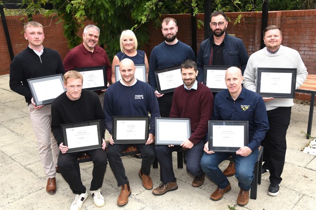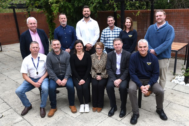 (Back row L-R) Stewart Barnes, QuoLux; Anthony Marshall, Leeways Packaging; Will Graulich, Greenfields; Justin Young, Cotteswold Dairy; Deborah McLean, Majorlift Hydraulic Equipment; Jon Groves, Lane's Health